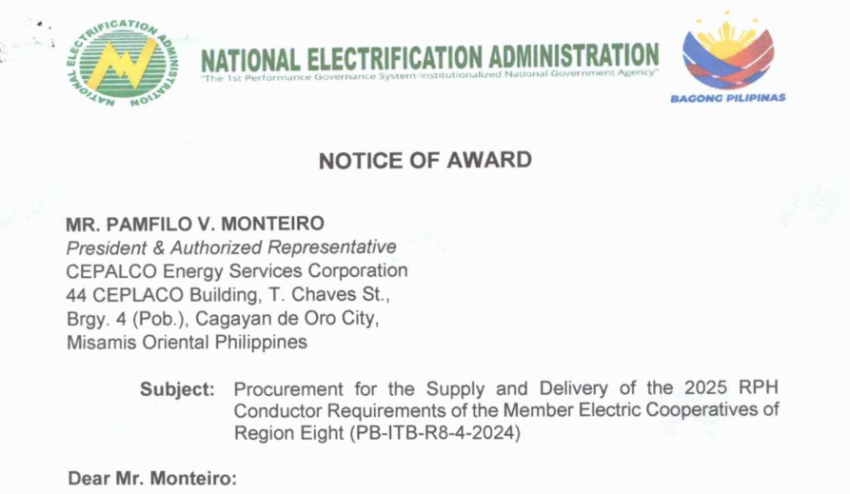 Procurement for the Supply and Delivery of the 2025 RPH Conductor Requirements of the Member Electric Cooperatives of Region Eight (PB-lTB-R8-4-2024)